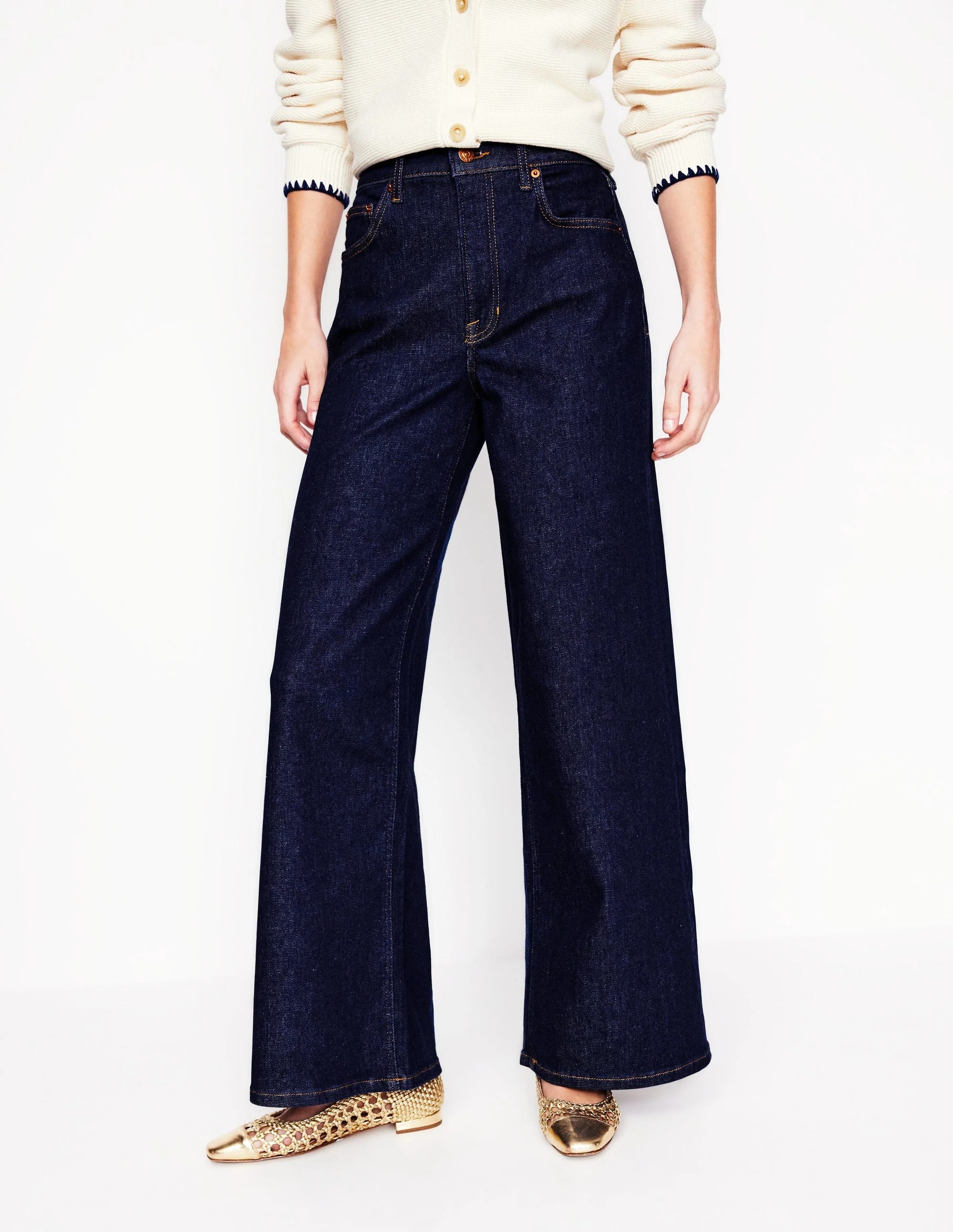 Dark Blue Cotton Wide-Leg Trousers